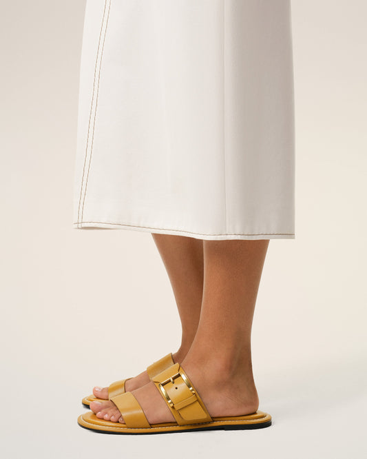 Yellow Calfskin Leather Buckle Sandals