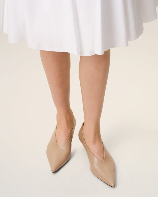 Beige pointed-toe wedge heels in lambskin leather